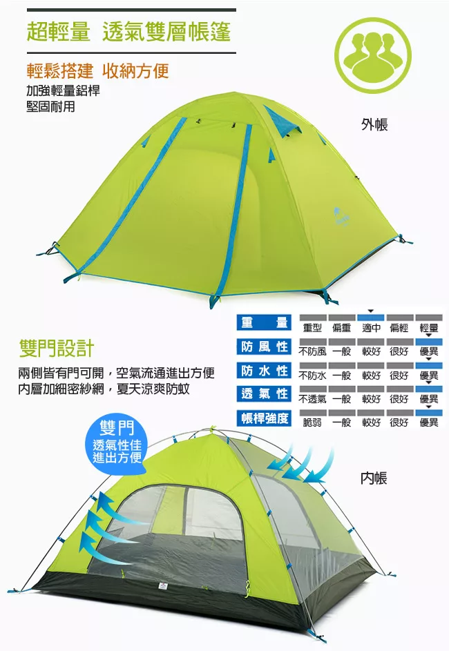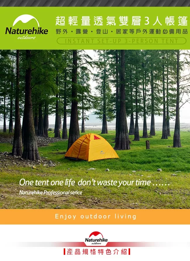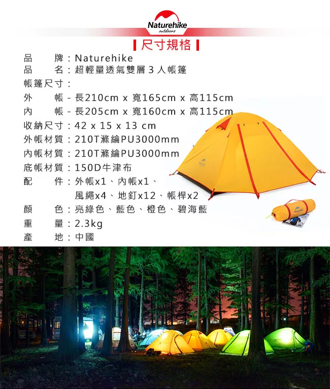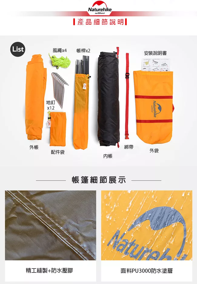 【Naturehike】Naturehike超輕量透氣雙層3人帳篷(橙色) 評價