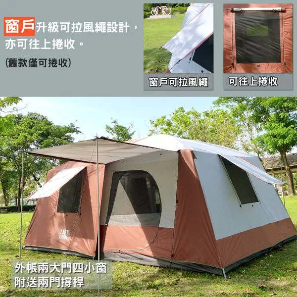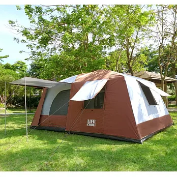 博客來e-coupon 【LIFECODE】《二房一廳》抗紫外線超大8人帳篷(二門四窗)-咖啡色