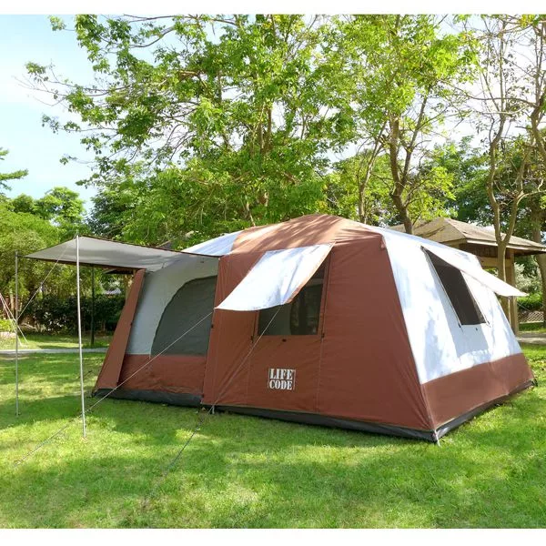 【LIFECODE】《二房一廳》抗紫外線超大8人帳篷(二門四窗)-咖啡色